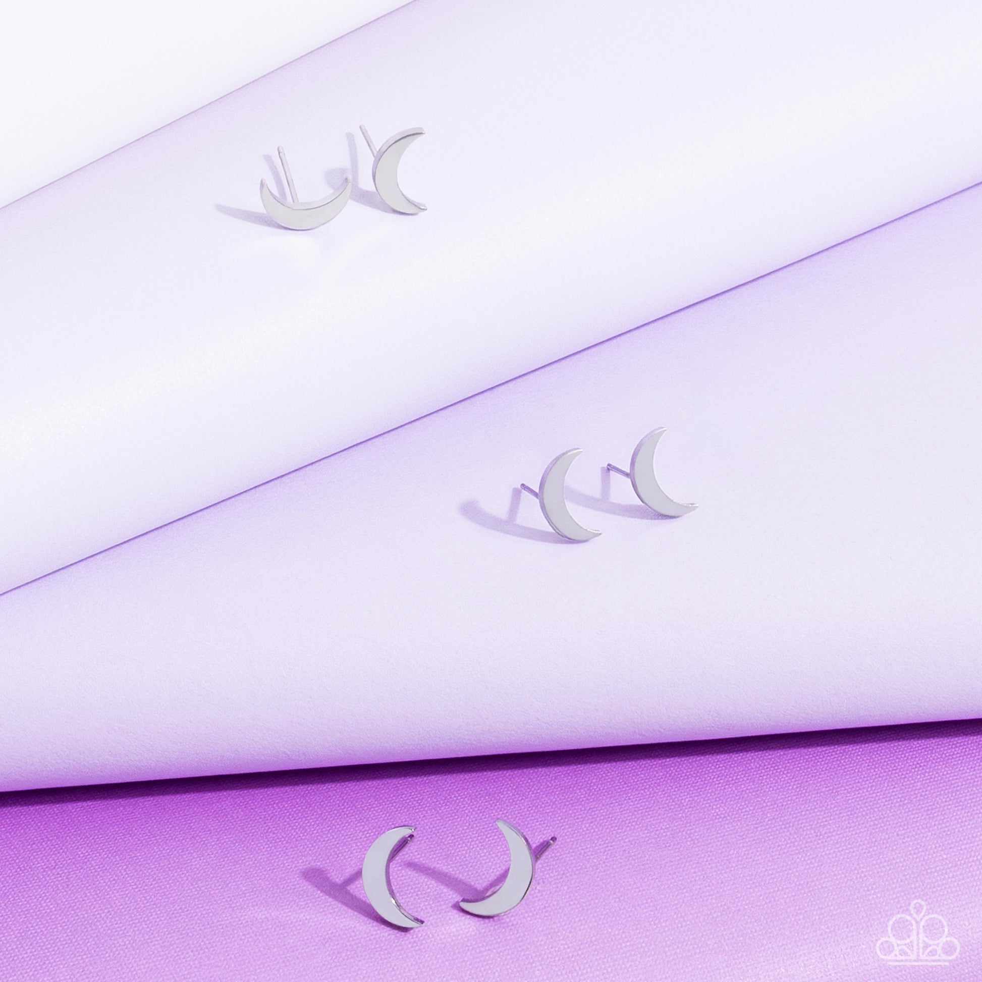 Sleek crescent moon studs are crafted from stainless steel, offering a minimalist yet durable design. The polished silver surface adds a refined touch, making these simple crescent studs versatile for everyday wear. Earrings attach to a standard post fitting.